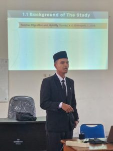 Mahasiswa pertama, Muhammad Solikin, memaparkan hasil penelitiannya yang berfokus pada pengaruh persepsi mahasiswa terhadap penggunaan aplikasi penunjang penulisan serta motivasi menulis dalam meningkatkan kemampuan menulis siswa di sekolah kejuruan. Sementara itu, Royanda mengangkat pengalaman mengajar guru bahasa Inggris non-penutur asli asal Indonesia di luar negeri sebagai topik penelitiannya.