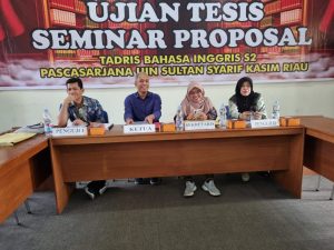 Pekanbaru– Dua mahasiswa Program Studi Magister (S2) Tadris Bahasa Inggris melaksanakan seminar hasil tesis di Ruang Ujian Pascasarjana UIN Suska Riau, pada Selasa, 29 Oktober 2025. Kegiatan ini merupakan bagian dari rangkaian akhir proses akademik sebelum menuju tahap ujian tesis.